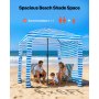VEVOR Beach Cabana 183 x 183 cm Baldachim plażowy ze ścianką boczną, ochrona przeciwsłoneczna UPF 50+, pawilon plażowy z workami z piaskiem, przenośny parasol przeciwsłoneczny dla rodziny i przyjaciół, niebieskie paski
