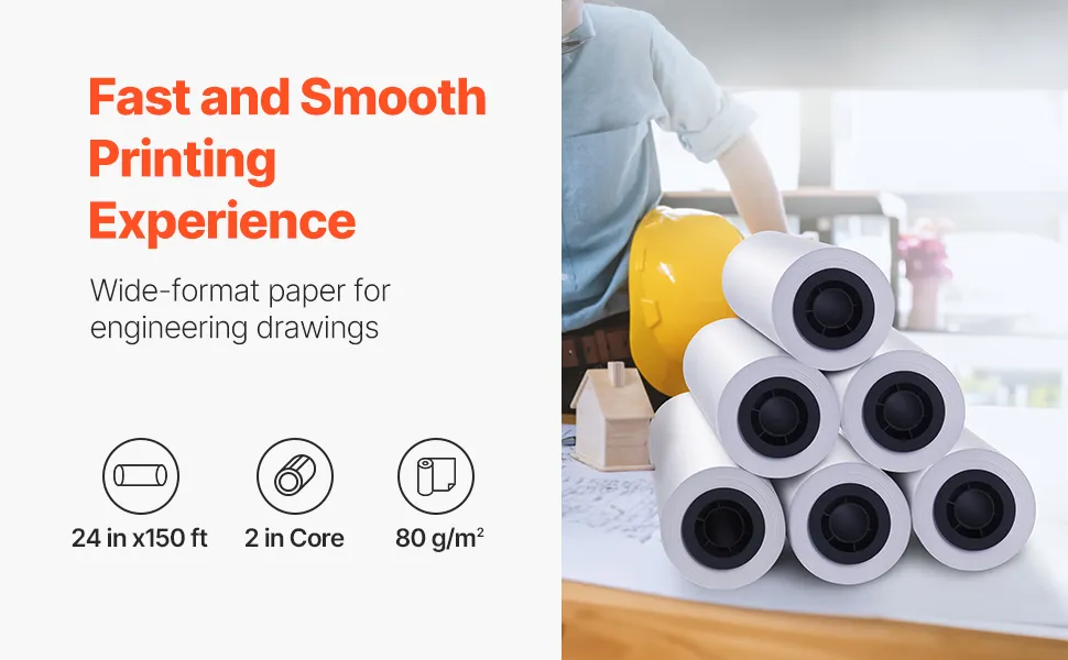 Papier do plotera wielkoformatowego VEVOR 45,7 m x 61 cm 6 rolek CAD Bond Rolls z rdzeniem 50,8 mm, rolki rysunkowe do rysunków CAD, planów technicznych, map GIS i projektów architektonicznych