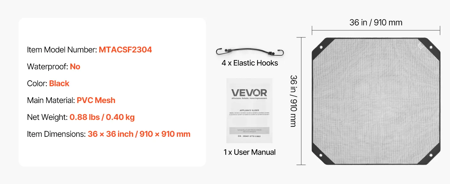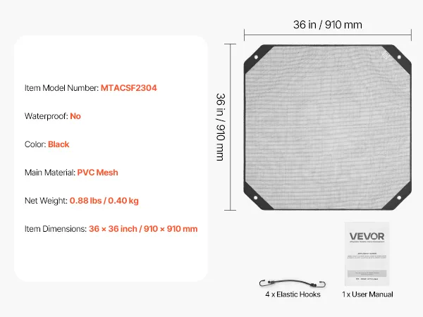 Pokrowiec na klimatyzator zewnętrzny VEVOR, 910 x 910 mm, pokrowiec ochronny na klimatyzator, siatka PVC z elastycznymi haczykami, odporny na rozdarcie, do użytku na zewnątrz, całoroczny, czarny