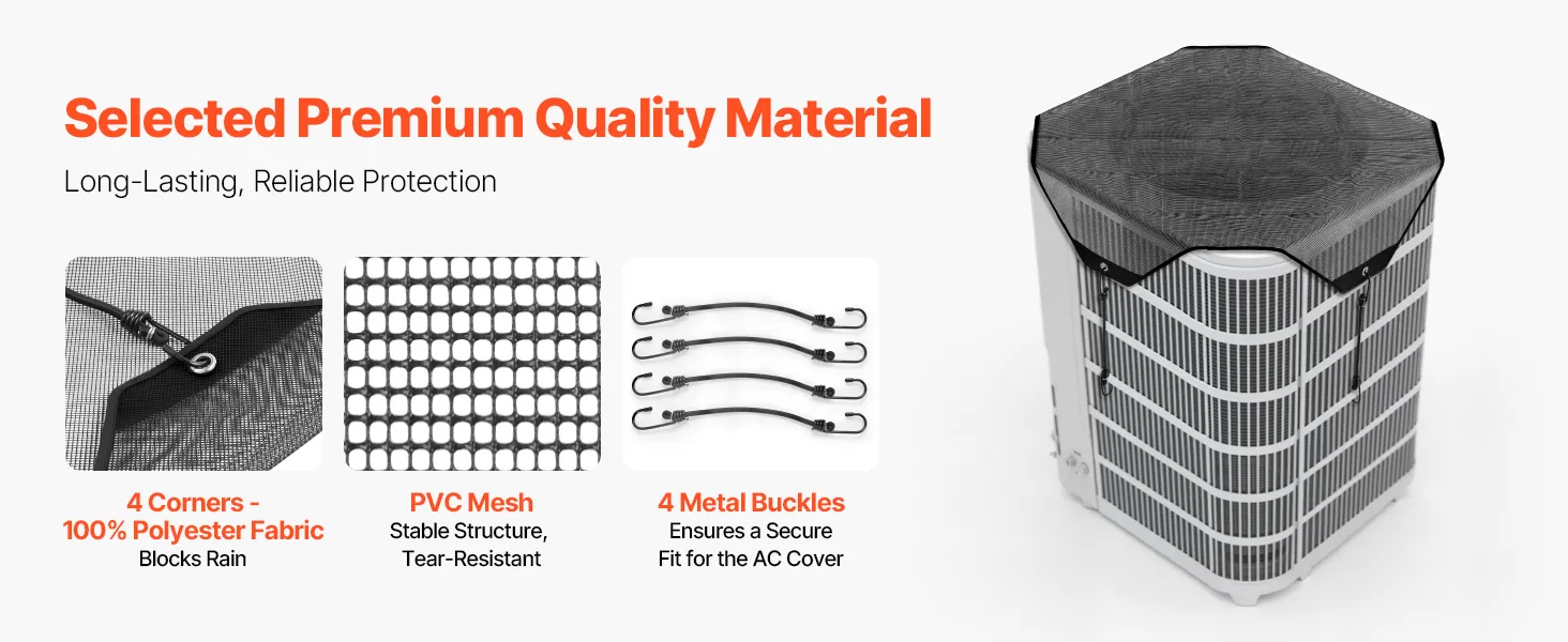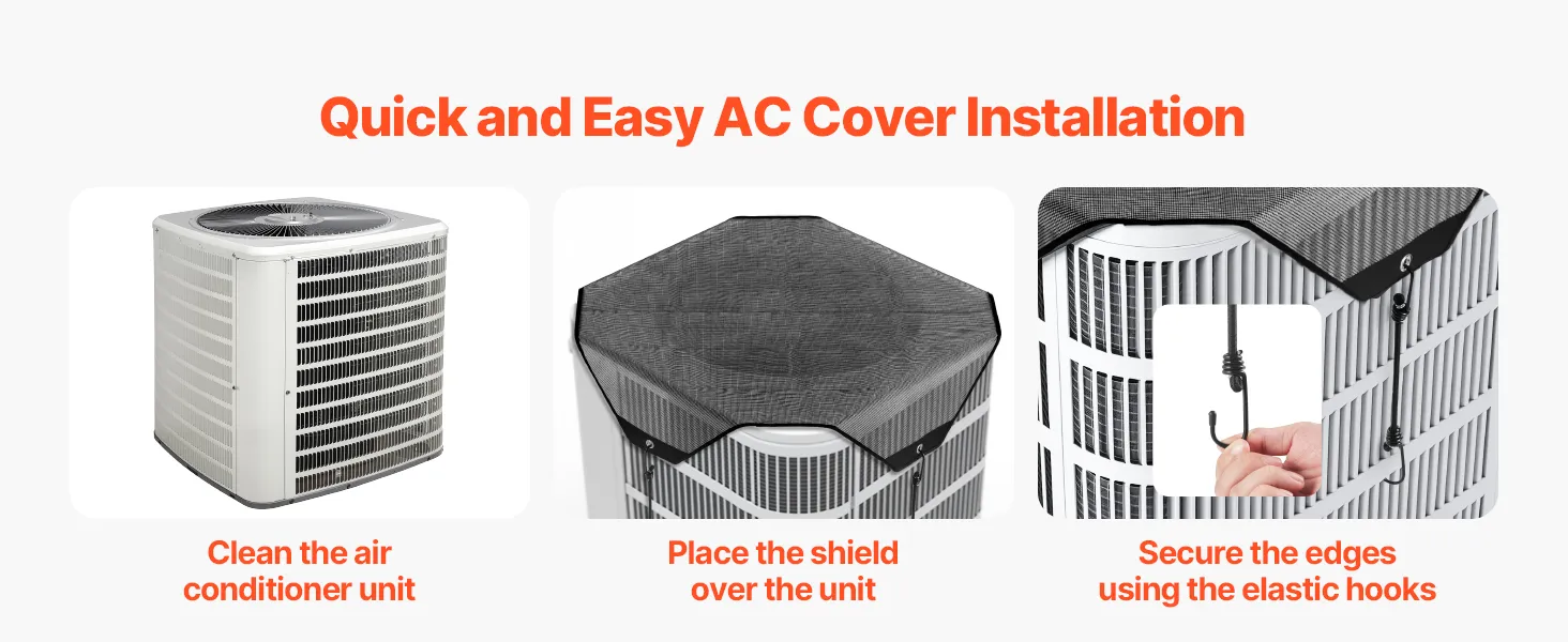 Kompleksowa ochrona: Ta osłona klimatyzatora blokuje liście, gałęzie i zanieczyszczenia, zapewniając kompleksową ochronę klimatyzatora. Gwarantuje stabilną pracę, zmniejsza ryzyko awarii i wydłuża żywotność urządzenia.