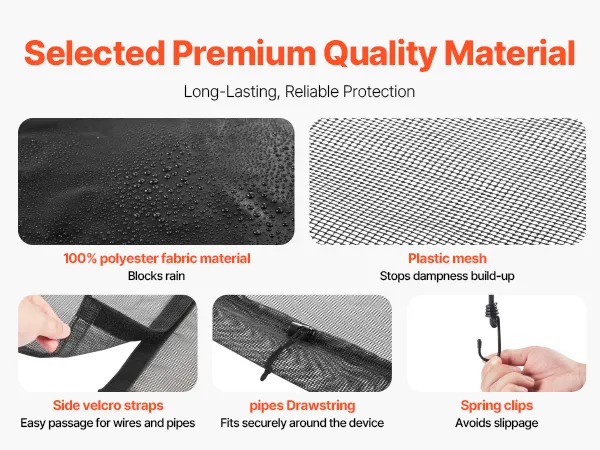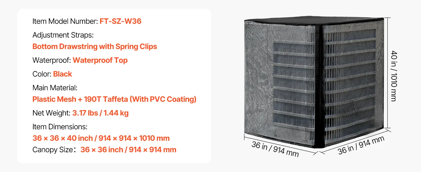 Kompleksowa ochrona: Oferuje dwa tryby ochrony: oddychająca siatka z PVC chroni przed liśćmi i zanieczyszczeniami, a wodoodporny dach chroni przed deszczem, śniegiem i gradem. Te dwa tryby są odpowiednie do trudnych warunków atmosferycznych i brudu, zapewniając stabilną pracę i dłuższą żywotność.