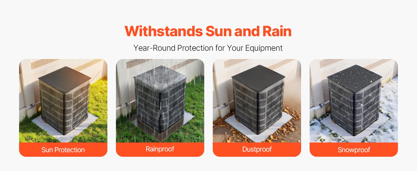 Pokrowiec na klimatyzator VEVOR, 914 x 914 x 1010 mm, dwuwarstwowy, zdejmowany dach, wodoodporny poliester, uniwersalny ochraniacz HVAC do klimatyzatorów zewnętrznych, czarny