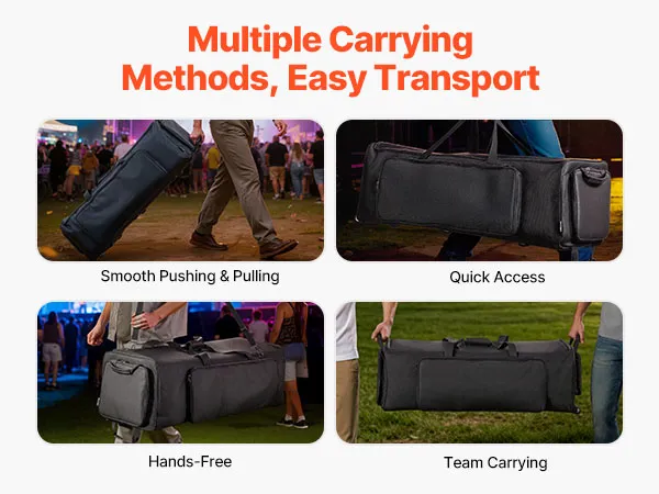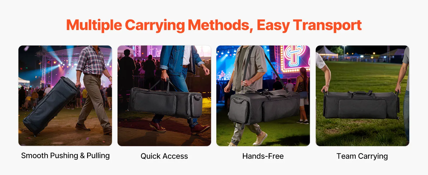 Nasza torba na akcesoria do statywów perkusyjnych oferuje wiele możliwości noszenia, w tym płynne toczenie, noszenie w ręce dla szybkiego dostępu oraz noszenie na ramieniu dla wygody, gdy masz wolne ręce, dzięki czemu transport jest bezproblemowy.