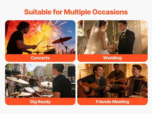 Ta torba transportowa na sprzęt perkusyjny idealnie sprawdzi się na koncertach, weselach, występach czy spotkaniach ze znajomymi i sprawdzi się na różne okazje.