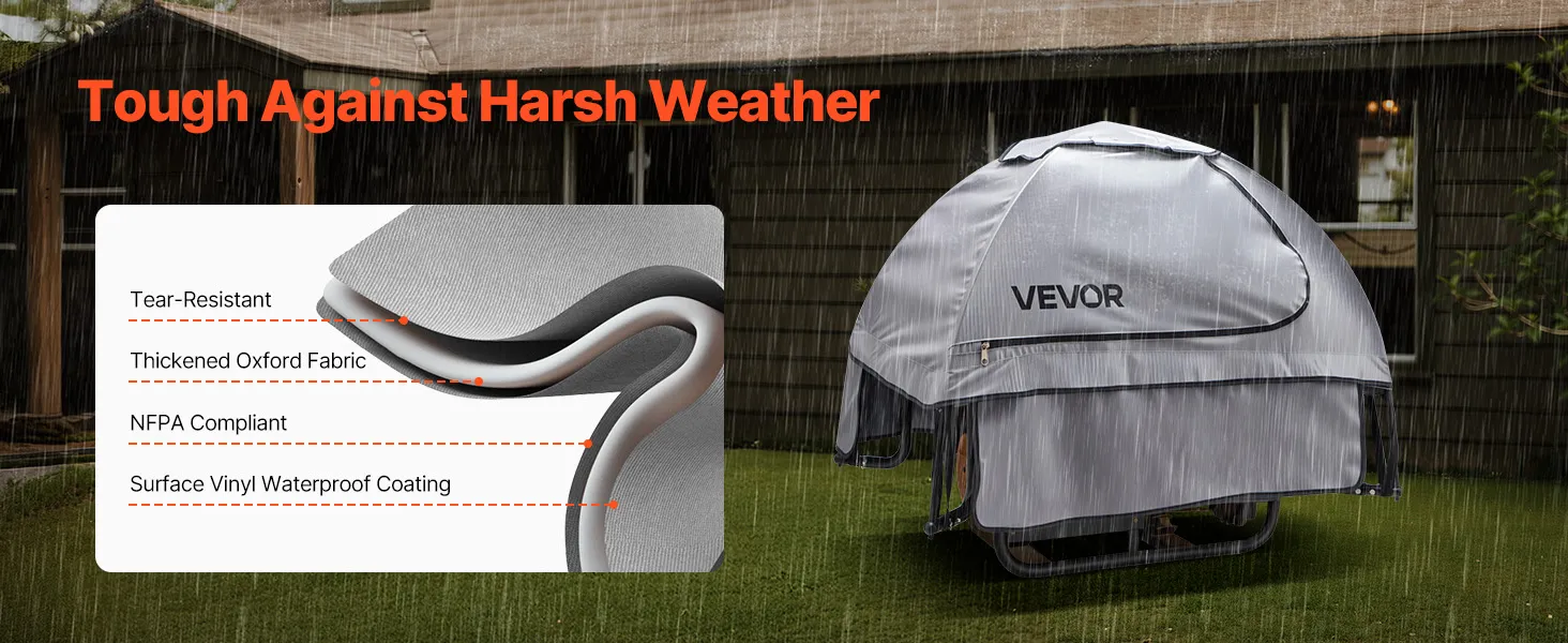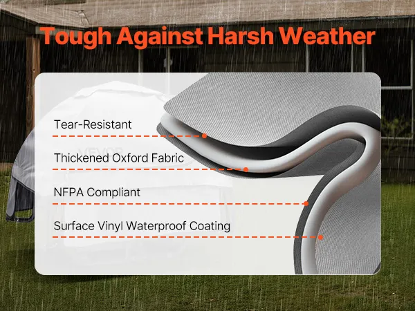 Wodoodporna tkanina winylowa: Ta osłona generatora, wykonana z wytrzymałej tkaniny winylowej z wodoodporną powłoką, spełnia normy NFPA. Jest odporna na rozdarcia, wodę, ciepło i zapewnia ochronę przed śniegiem i wiatrem w każdych warunkach pogodowych.