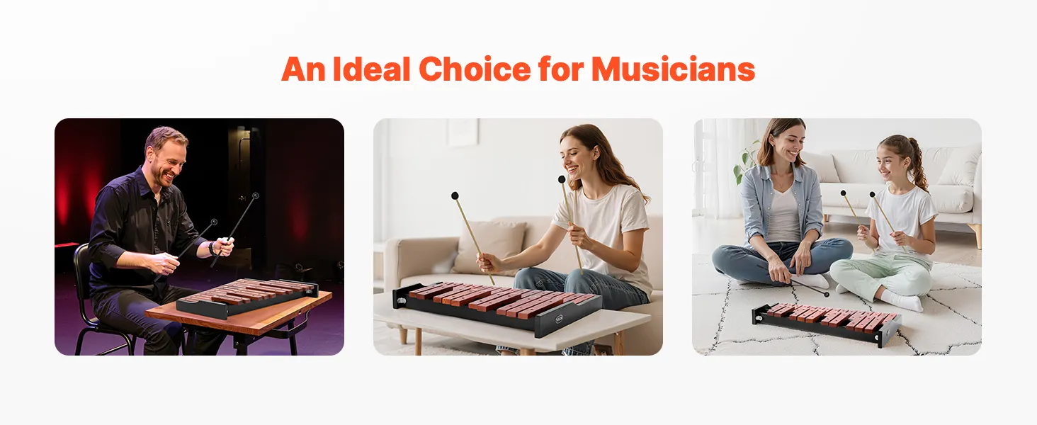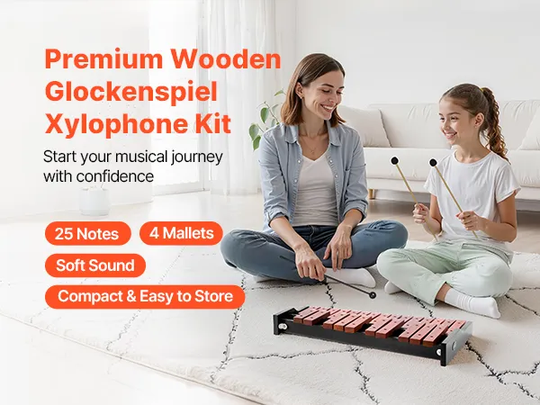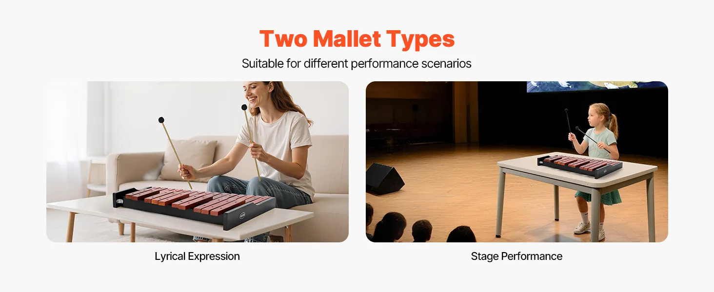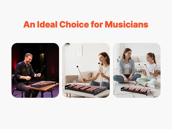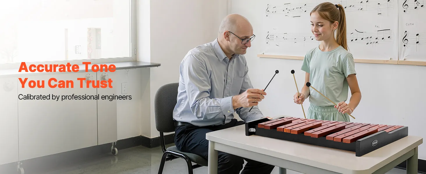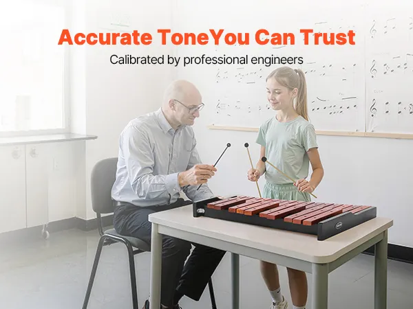 Miękkie i złożone tony: Dzięki drewnianym klawiszom nasz profesjonalny ksylofon zapewnia miękkie, dźwięczne brzmienie, odpowiednie do ćwiczeń w domu, lekcji muzyki i występów scenicznych. Profesjonalnie dostrojony w fabryce, aby zapewnić precyzję dźwięku i minimalne odchylenia.