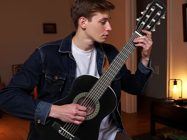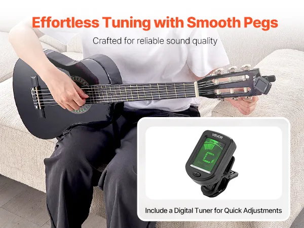 Łatwe i precyzyjne strojenie: Dzięki ulepszonym, precyzyjnym kołkom, ten zestaw do gitary klasycznej dla początkujących sprawia, że strojenie jest dziecinnie proste – nawet dla początkujących. Dołączony tuner umożliwia precyzyjne i szybkie strojenie oraz gwarantuje czyste brzmienie.