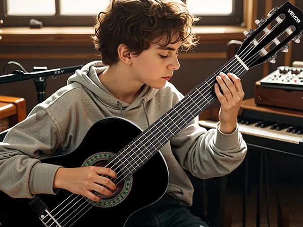 P: Czy tę gitarę łatwo się stroi? Czy początkujący poradzą sobie z nią? O: Zdecydowanie! Ulepszone kołki stroikowe i dołączony tuner cyfrowy umożliwiają płynne i precyzyjne strojenie. Początkujący mogą łatwo zacząć, korzystając z prostego samouczka wideo online.