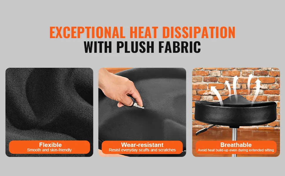 Ten regulowany stołek perkusyjny ma szerokie siedzisko ze skóry i materiału. Jest wyściełany pianką o wysokiej gęstości i grubości 3,9 cala. Zapewnia to doskonały komfort podczas długich sesji. Ergonomiczna konstrukcja w kształcie siodła maksymalizuje powierzchnię styku, redukując dyskomfort nawet podczas dłuższych okresów gry. Miękka powierzchnia naszego siedziska z frędzlami zapewnia doskonałą absorpcję wilgoci i oddychalność, co zapewnia chłód i suchość. Ponadto szerokie siedzisko zapewnia lepsze podparcie dolnej części pleców, dzięki czemu jest idealne dla perkusistów, którzy potrzebują dłuższego komfortu.