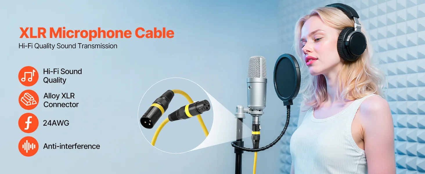 • Jakość dźwięku Hi-Fi: Ten kabel XLR charakteryzuje się średnicą przewodu 24 AWG i warstwą ekranującą przeciwzakłóceniową, która zapobiega zewnętrznym zakłóceniom sygnału. Zapewnia doskonałą przewodność i transmisję sygnału, co pozwala na profesjonalną transmisję dźwięku.