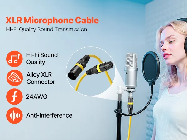 • Jakość dźwięku Hi-Fi: Ten kabel XLR charakteryzuje się średnicą przewodu 24 AWG i warstwą ekranującą przeciwzakłóceniową, która zapobiega zewnętrznym zakłóceniom sygnału. Zapewnia doskonałą przewodność i transmisję sygnału, co pozwala na profesjonalną transmisję dźwięku.