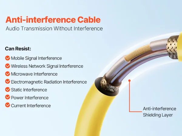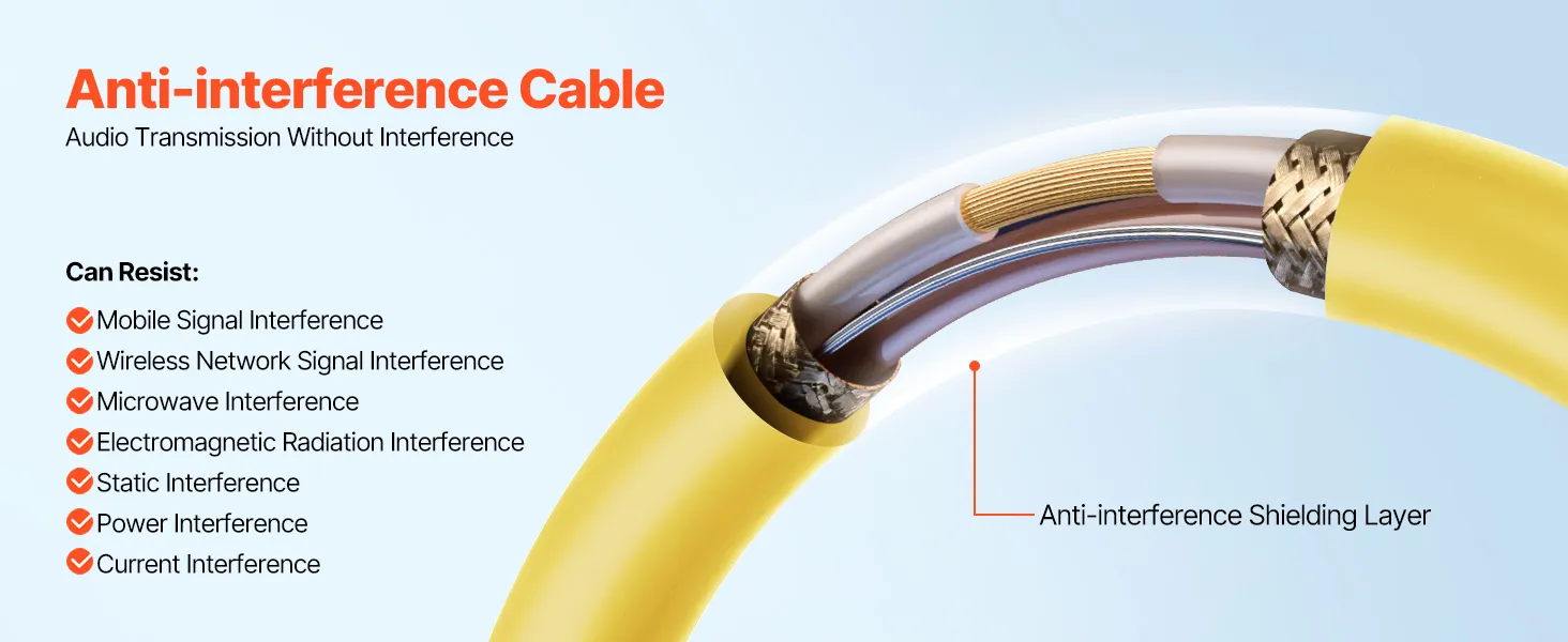 Kable mikrofonowe XLR są wyposażone w warstwę przeciwzakłóceniową, która skutecznie chroni przed niepotrzebnymi zakłóceniami, zapewniając czyste i stabilne sygnały audio podczas przesyłania z głośników do mikserów podcastów lub innych urządzeń audio.