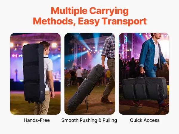 Nasze etui z 88-klawiszową klawiaturą oferuje wiele możliwości noszenia, w tym płynne toczenie, noszenie w ręce dla szybkiego dostępu oraz noszenie na ramieniu dla wygody trzymania klawiatury w dłoniach, dzięki czemu transport jest bezproblemowy.
