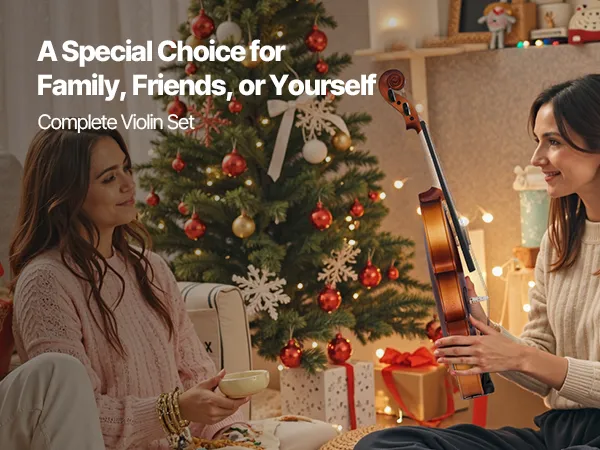 Kompletny zestaw skrzypcowy: Zestaw zawiera futerał na skrzypce, smyczek, mostek, kalafonię, tuner, podpórkę na ramię, zapasowe struny, naklejki i ściereczkę do polerowania. Nie ma potrzeby szukania dodatkowych akcesoriów do skrzypiec! Wystarczy otworzyć pudełko, szybko nastroić, wypolerować smyczek kalafonią i od razu zacząć grać.