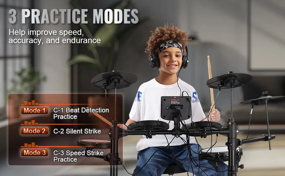 Rozwijaj swoje umiejętności dzięki trzem trybom: C-1 do rozpoznawania rytmu, C-2 do cichej gry i C-3 do ćwiczeń szybkości. Zwiększaj swoją szybkość, celność i wytrzymałość z każdym treningiem!