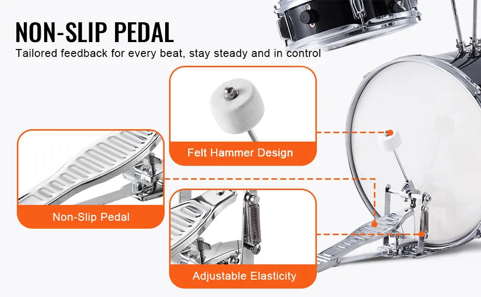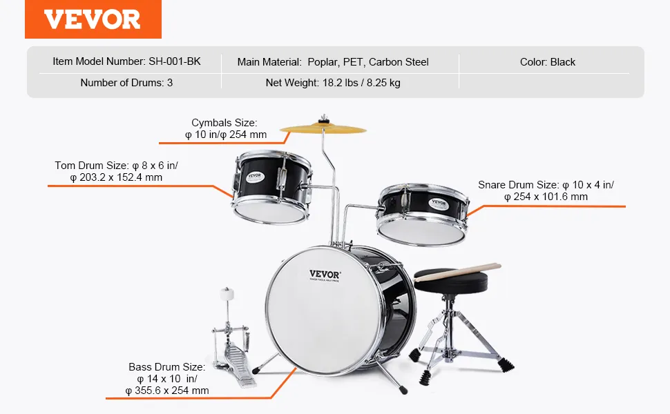 Idealny dla młodych muzyków. Oferuje wszystko, czego dziecko potrzebuje, aby rozpocząć naukę i ćwiczenia. Jest kompaktowy i idealny dla małych rączek. Zestaw zawiera trzy bębny: bęben basowy, werbel i tom-tom. W zestawie znajdują się również dwa talerze (2x10mm, 3x12mm), pedał, pałeczki i dwa talerze do tańca towarzyskiego (1/4"). Ten zestaw jest przeznaczony głównie dla małych dzieci w wieku od 4 do 8 lat. Są one zaprojektowane tak, aby były trwałe i wytrzymywały energiczną grę. Te pady perkusyjne oferują „prawdziwy dźwięk”, dzięki czemu sesje treningowe są zabawne i angażujące.