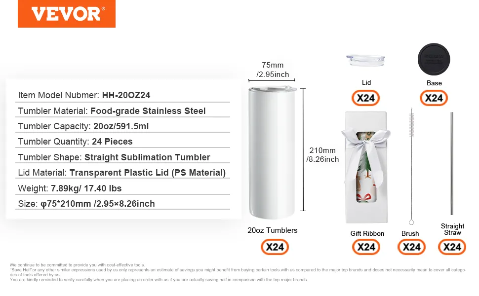Kubki sublimacyjne VEVOR są wykonane ze stali nierdzewnej dopuszczonej do kontaktu z żywnością. Dzięki temu spełniają normy FDA. Zewnętrzna obudowa jest również wykonana ze stali nierdzewnej. Dzięki temu są bezpieczne i trwałe. Możesz ich używać przez długi czas, nie martwiąc się o problemy z jakością. Są idealne do codziennego użytku i na specjalne okazje. Możesz cieszyć się ulubionymi napojami ze spokojem. Są nie tylko łatwe do czyszczenia i konserwacji; wysokiej jakości materiał sprawia również, że łatwiej je wycierać i trzymać na miejscu, co zwiększa ich wygodę i niezawodność.