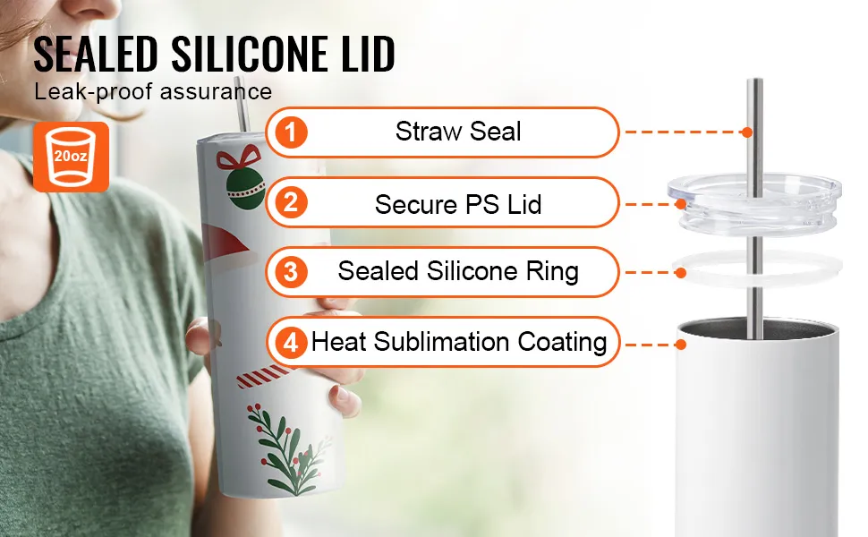 Kubki sublimacyjne VEVOR są wykonane ze stali nierdzewnej dopuszczonej do kontaktu z żywnością. Dzięki temu kubki są bezpieczne do codziennego użytku. Materiał jest zgodny ze standardami FDA, więc możesz zaufać jego jakości. Ponadto zewnętrzna obudowa jest wykonana ze stali nierdzewnej, co zwiększa jej trwałość. Oznacza to, że nie będzie żadnych problemów w dłuższej perspektywie. Materiał jest odporny na rdzę i korozję, dzięki czemu idealnie nadaje się do długotrwałego użytkowania. Te 20-uncjowe smukłe kubki są zbudowane tak, aby wytrzymać codzienne zużycie. Dzięki temu są niezawodnym wyborem do codziennego użytku.