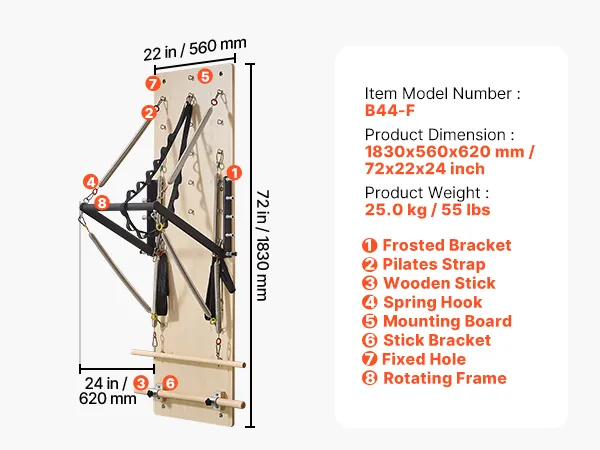 Reformer ścienny VEVOR do pilatesu, trampolina do pilatesu z drewna klonowego, sprzęt do ćwiczeń ze sprężynami oporowymi, urządzenie do jogi dla równowagi i elastyczności, trening w domowej siłowni