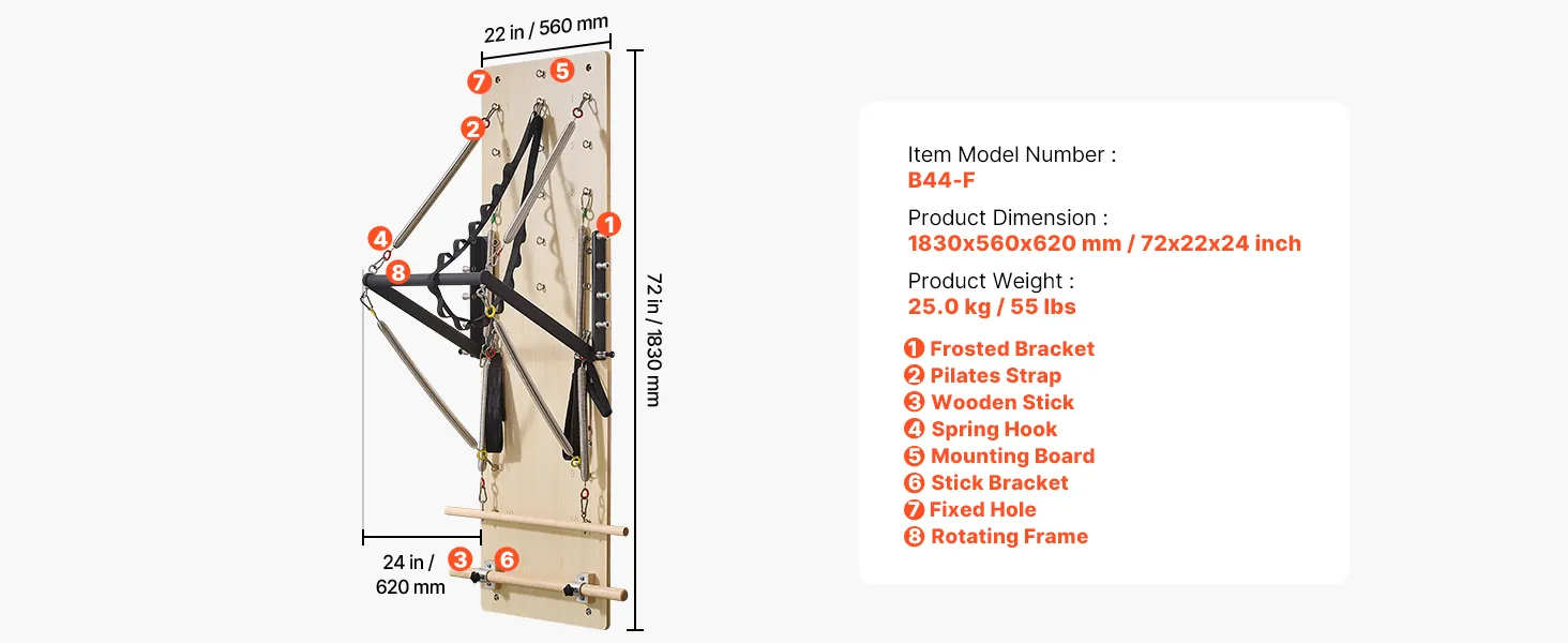 Oszczędność miejsca: Sprzęt do pilatesu w domu i na siłowni można zamontować na ścianie, co pozwala optymalnie wykorzystać powierzchnię podłogi. Jest to idealny wybór do ulepszania siłowni, siłowni domowych lub studiów jogi