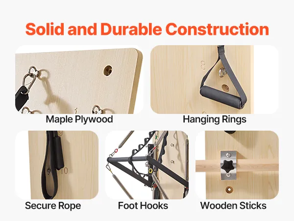 Bogate wyposażenie dodatkowe: Trener jogi i fitnessu jest wyposażony w szereg taśm oporowych i dodatkowych akcesoriów odpowiednich dla użytkowników o każdym poziomie zaawansowania. Posiada 26 haczyków umożliwiających maksymalną regulację wysokości i różnorodność ćwiczeń, a drewniane drążki zapewniają wszechstronne wsparcie dla różnych treningów