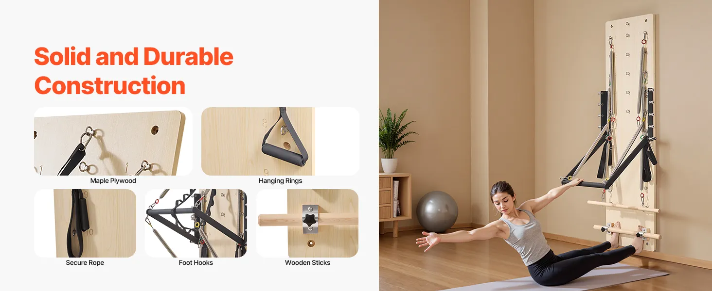 Materiały profesjonalne wysokiej jakości: Urządzenie do ćwiczeń Pilates wykonane jest z naturalnej i trwałej sklejki klonowej, dzięki czemu ma solidną konstrukcję i spełnia codzienne potrzeby treningowe. Wykonany jest z białego litego drewna, aby uzyskać bardziej estetyczny wygląd