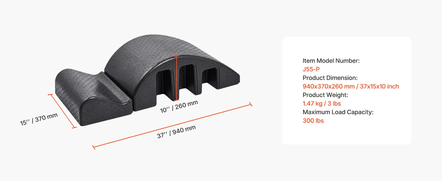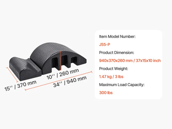 Trening wielofunkcyjny: Ten korektor kręgosłupa Pilatesa jest stosowany do korekcji kręgosłupa i zapewnia elastyczność w zakresie zginania, prostowania, zginania bocznego i korekcji rotacji. Pomaga również w przypadku bólu pleców i szyi, dlatego jest urządzeniem wielofunkcyjnym. Wymiary produktu: 39 x 15 x 11 cali (980 x 390 x 270 mm)