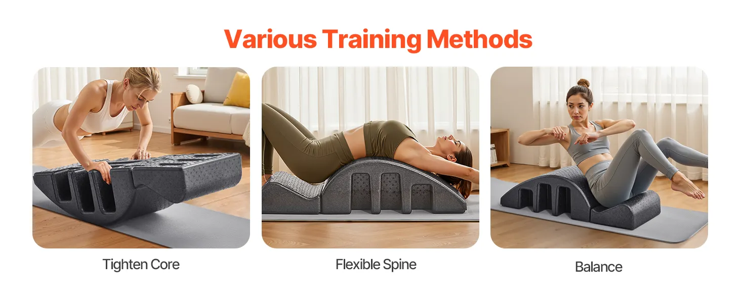 Korektor kręgosłupa Pilates przeznaczony jest do korekcji kręgosłupa i umożliwia korekcję zgięcia, wyprostu, zgięcia bocznego i rotacji. Pomaga również w przypadku bólu pleców i szyi, a jeden produkt oferuje wiele zastosowań.