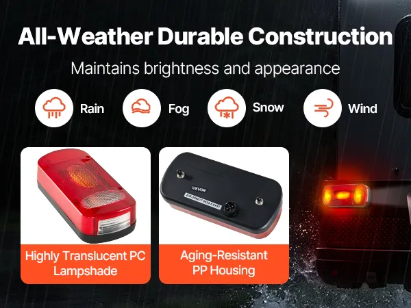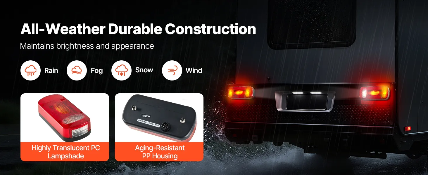 Doskonale widoczne oświetlenie: Ten zestaw oświetlenia przyczepy wyposażony jest w jasne światła z półprzezroczystymi soczewkami PC. Zapewnia doskonałą widoczność w nocy i w niesprzyjających warunkach pogodowych. Wytrzymałe soczewki PC są odporne na uderzenia i warunki atmosferyczne, zapewniając większe bezpieczeństwo podczas jazdy.