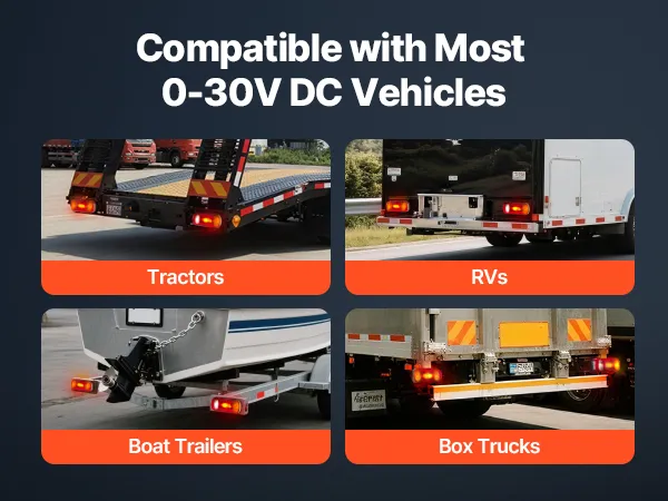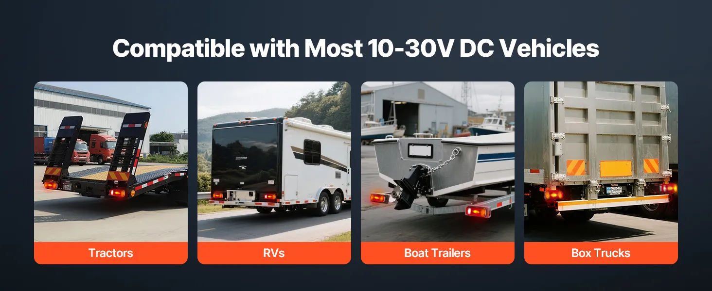 Te wszechstronne lampy do przyczep pasują do różnych pojazdów zasilanych prądem stałym 12 V, w tym kamperów, przyczep do łodzi, przyczep użytkowych i vanów. Nadają się do codziennego użytku i w sytuacjach specjalnych, zapewniając niezawodne oświetlenie pojazdu i funkcje ostrzegawcze.