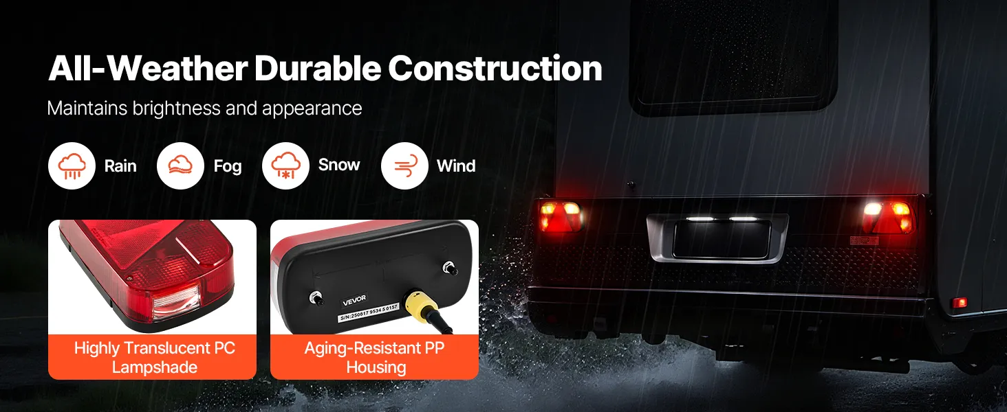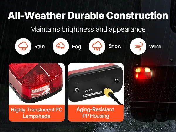 Doskonale widoczne oświetlenie: Ten zestaw oświetlenia przyczepy wyposażony jest w jasne światła z półprzezroczystymi soczewkami PC. Zapewnia doskonałą widoczność w nocy i w niesprzyjających warunkach pogodowych. Wytrzymałe soczewki PC są odporne na uderzenia i warunki atmosferyczne, zapewniając większe bezpieczeństwo podczas jazdy.