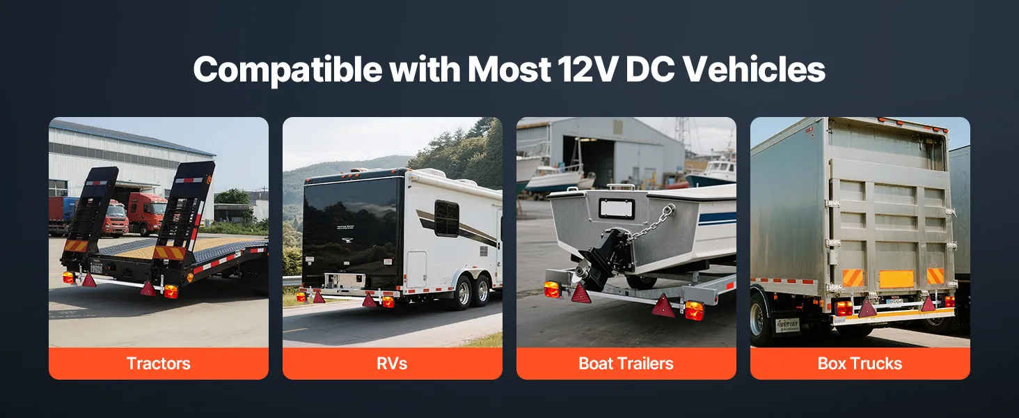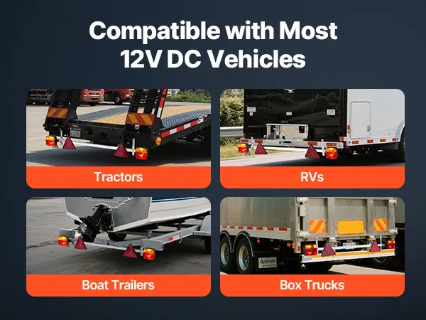 Te wszechstronne lampy do przyczep pasują do różnych pojazdów zasilanych prądem stałym 12 V, w tym kamperów, przyczep do łodzi, przyczep użytkowych i vanów. Nadają się do codziennego użytku i w sytuacjach specjalnych, zapewniając niezawodne oświetlenie pojazdu i funkcje ostrzegawcze.