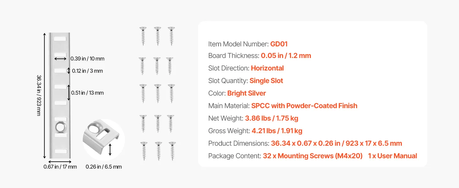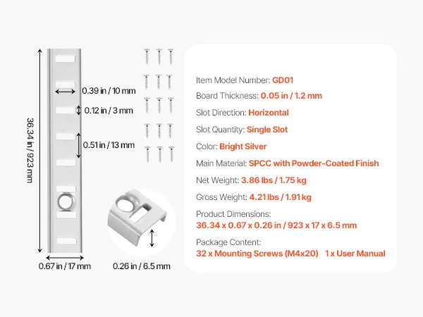 Trwałość: Nasza listwa półkowa z listwami pilastrowymi wykonana jest z wysokiej jakości stali SPCC o powierzchni odpornej na zużycie. Zapewnia doskonałą nośność i jest odporny na zarysowania, rdzę i odkształcenia
