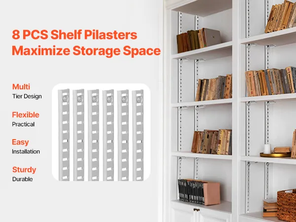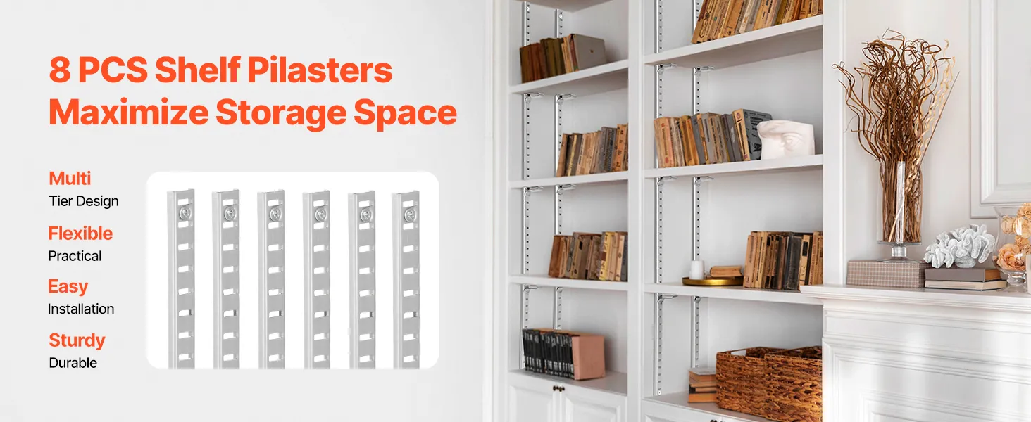 Pilastry półkowe VEVOR, 923 mm, 8 szt., regulowane stalowe wsporniki półek, wsuwane słupki pilastrowe z 32 śrubami, pasujące do systemu półek ściennych, organizacja szafy