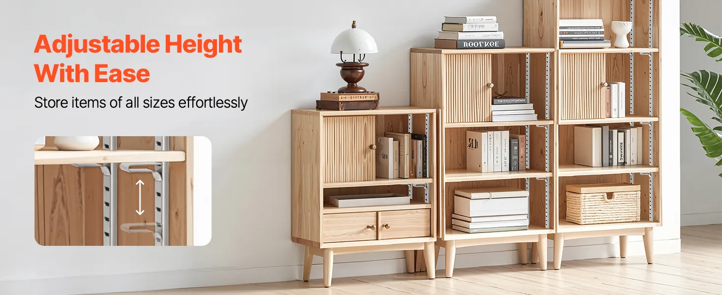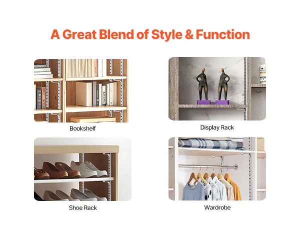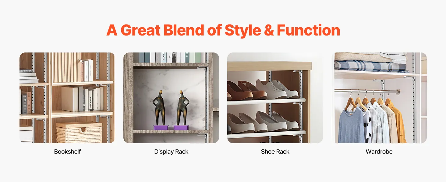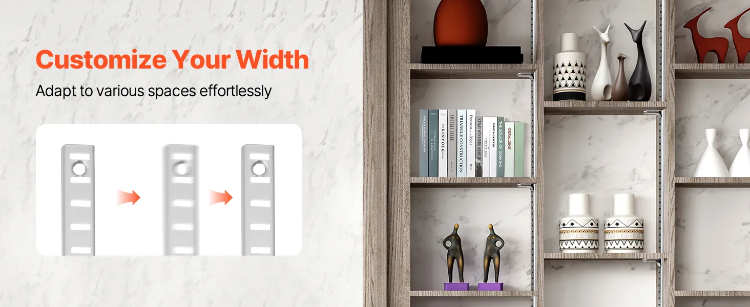 Elastyczna wysokość i szerokość: Możesz łatwo dostosować wysokość i szerokość półki pilastrowej, aby dopasować ją do wszystkiego, od wysokich dekoracji po ułożone w stos książki, zapewniając w pełni konfigurowalne rozwiązanie do przechowywania