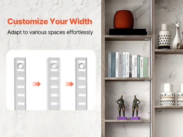 Niezależnie od tego, czy chcesz uporządkować ciasny kąt, czy dużą, otwartą przestrzeń, regulowana szerokość z łatwością dopasuje się do Twoich potrzeb.