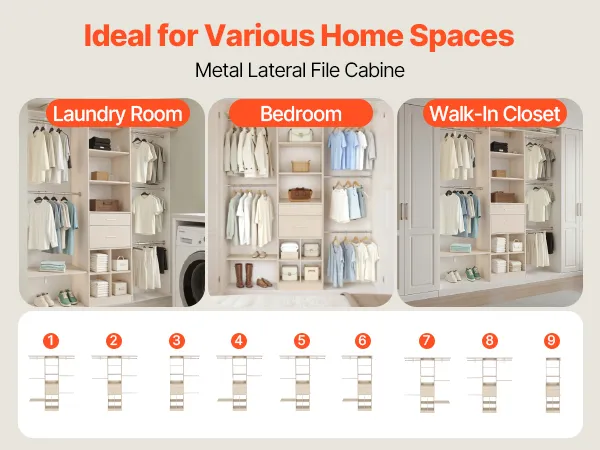 Łatwy montaż pozwala na umieszczenie mebli w pralniach, sypialniach lub garderobach, tworząc elastyczne rozwiązania do przechowywania.