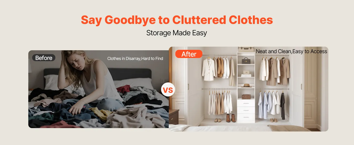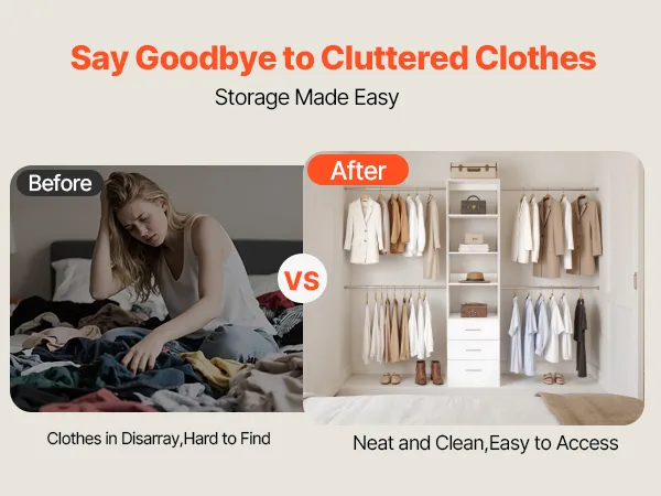 Duża pojemność: Ten system szaf z szufladami wytrzymuje obciążenie do 362,7 kg i pomieści około 100 ubrań. Przegródki pozwalają na uporządkowane oddzielenie ubrań, zapewniając jednocześnie łatwy dostęp do wszystkiego.