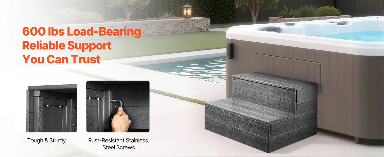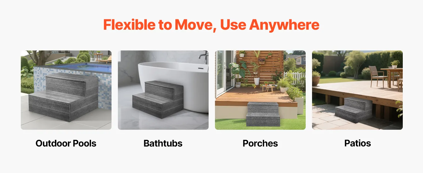 Stworzony, by sprostać warunkom atmosferycznym: Wysokiej jakości HIPS jest odporny na starzenie i odkształcenia oraz zaprojektowany do całorocznego użytkowania jako stopień do wanny, nie niszcząc się pod wpływem słońca, deszczu ani śniegu. Wystarczy go rozłożyć i zapomnieć – gwarantuje niezawodność przez cały rok.