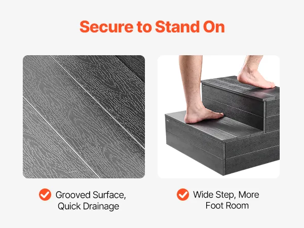 Szybki odpływ: Schody spa posiadają poszerzone stopnie, które odprowadzają wodę, zapobiegając tworzeniu się kałuż. Przystosowane do chodzenia boso, co zapewnia bezpieczny i wygodny dostęp do schodów basenowych. Spraw, aby każde wejście było płynniejsze i bezpieczniejsze.