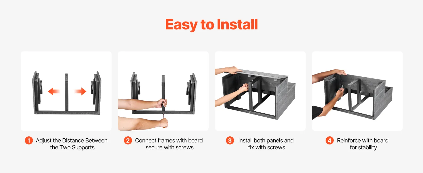 Solidna konstrukcja ze śrubami ze stali nierdzewnej jest odporna na rdzę i wyginanie, a także zapewnia stabilne podparcie – nawet dla cięższych użytkowników.