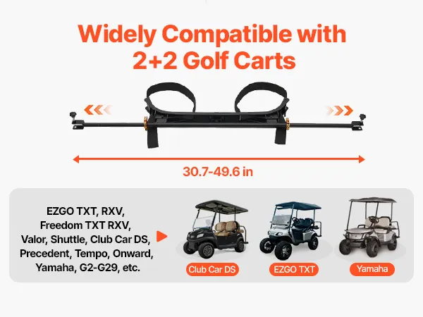 Nasz uchwyt na torbę do wózka golfowego na tylne siedzenie jest regulowany w zakresie od 779,78 do 1259,84 mm. Dzięki ulepszonym zaciskom szybkozłącznym dopasowuje się do różnych szerokości wózków i zapewnia niezawodne podparcie dla wszystkich modeli 2+2-osobowych.