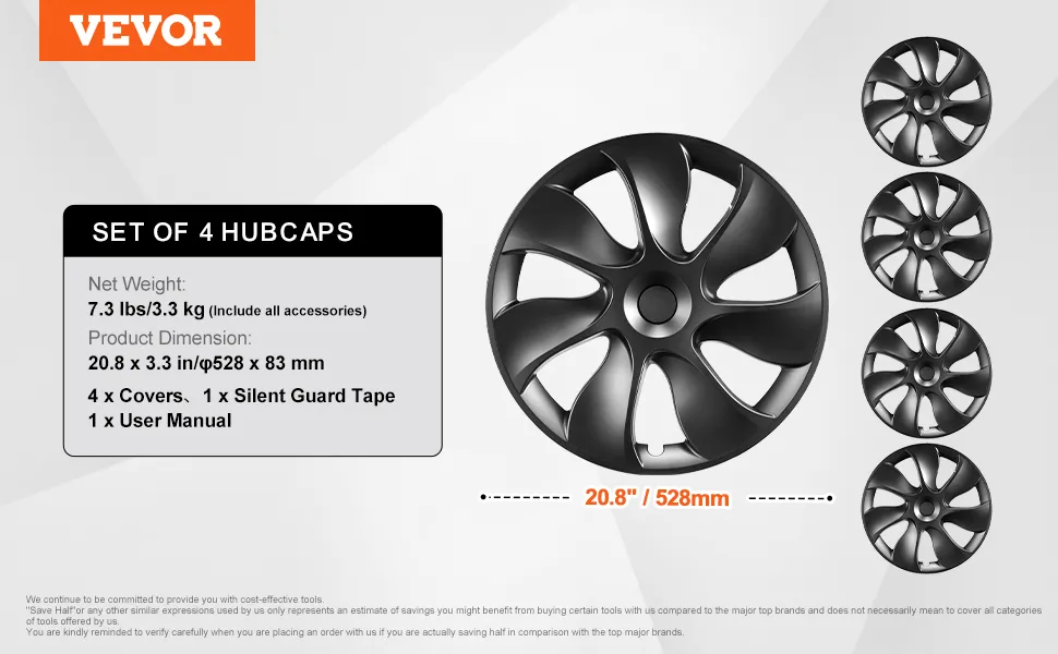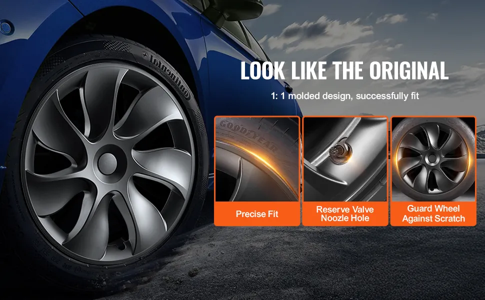 Kołpaki VEVOR, kołpaki do felg, model Y 2021-2023, kołpak z zatrzaskiem, taśmą ochronną i otworem na dyszę zaworu, kołpak ABS i PC o wysokiej sztywności i odporności na warunki atmosferyczne