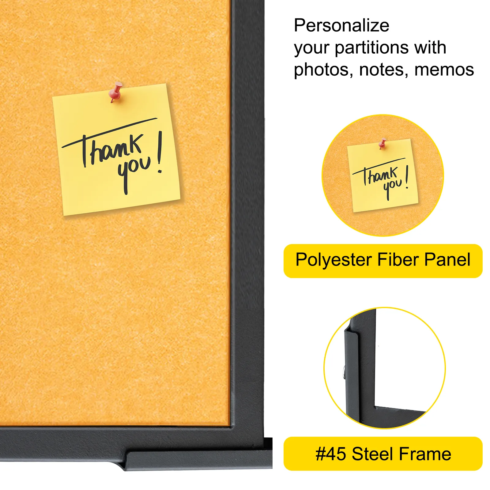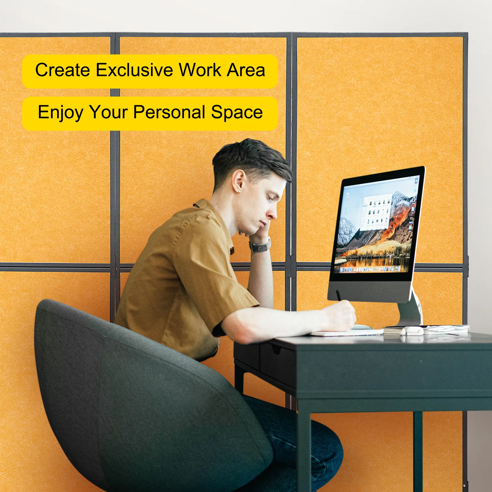 Ta przegroda biurowa jest wykonana z trzech paneli z włókien poliestrowych i stalowej ramy 45, która charakteryzuje się doskonałą ognioodpornością, solidną konstrukcją i trwałością. Panel działowy do biura zmniejsza hałas i zapewnia prywatność, jednocześnie maksymalizując wykorzystanie przestrzeni. Dzięki elastycznemu połączeniu ściana budki daje swobodę łatwej zmiany miejsca pracy lub nauki.
