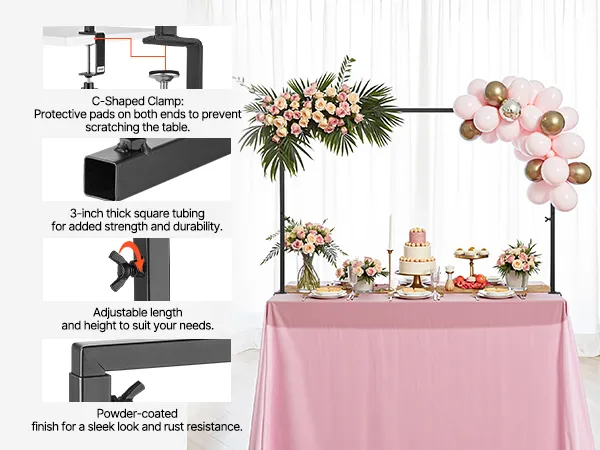 Wszechstronny i elastyczny: przenośny i łatwy do przenoszenia, ten łukowy stojak stołowy jest idealny do użytku wewnątrz i na zewnątrz. Idealny na wesela, uroczystości, przyjęcia urodzinowe, Sylwestra, Halloween, Święto Dziękczynienia, Boże Narodzenie, bufety ze słodyczami i przyjęcia z okazji ukończenia szkoły, spełnia wszystkie Twoje potrzeby dekoracyjne.