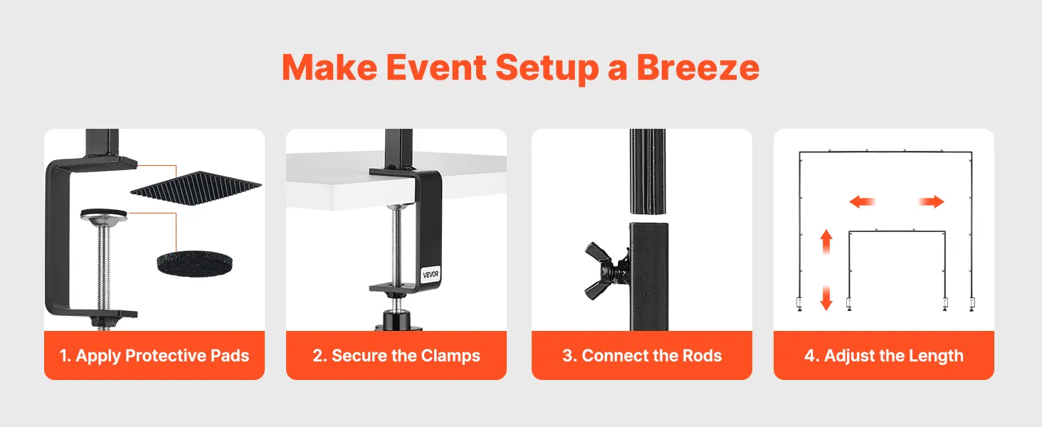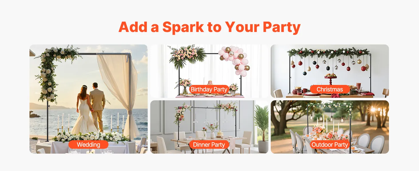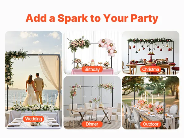 Zawieś światła, podeprzyj balony lub rozłóż baldachim, aby szybko go rozstawić. Idealny na wesela, imprezy i święta. Niezależnie od tego, czy w pomieszczeniu, czy na zewnątrz, ten słup tworzy oszałamiającą atmosferę na każdym wydarzeniu.