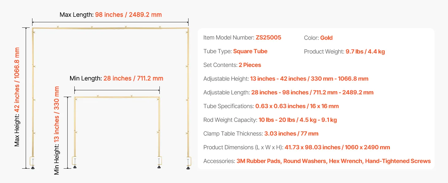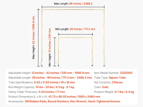 Solidna, nośna konstrukcja: Ten stojak na stół wykonany jest z kwadratowych rur i zacisków C o średnicy 77 mm, oferując nośność od 4,5 kg do 9,1 kg. Dzięki temu jest trwalszy i stabilniejszy niż konwencjonalne cienkie okrągłe rurki. Odporne na rdzę, malowane proszkowo wykończenie wytrzymuje działanie czynników atmosferycznych.
