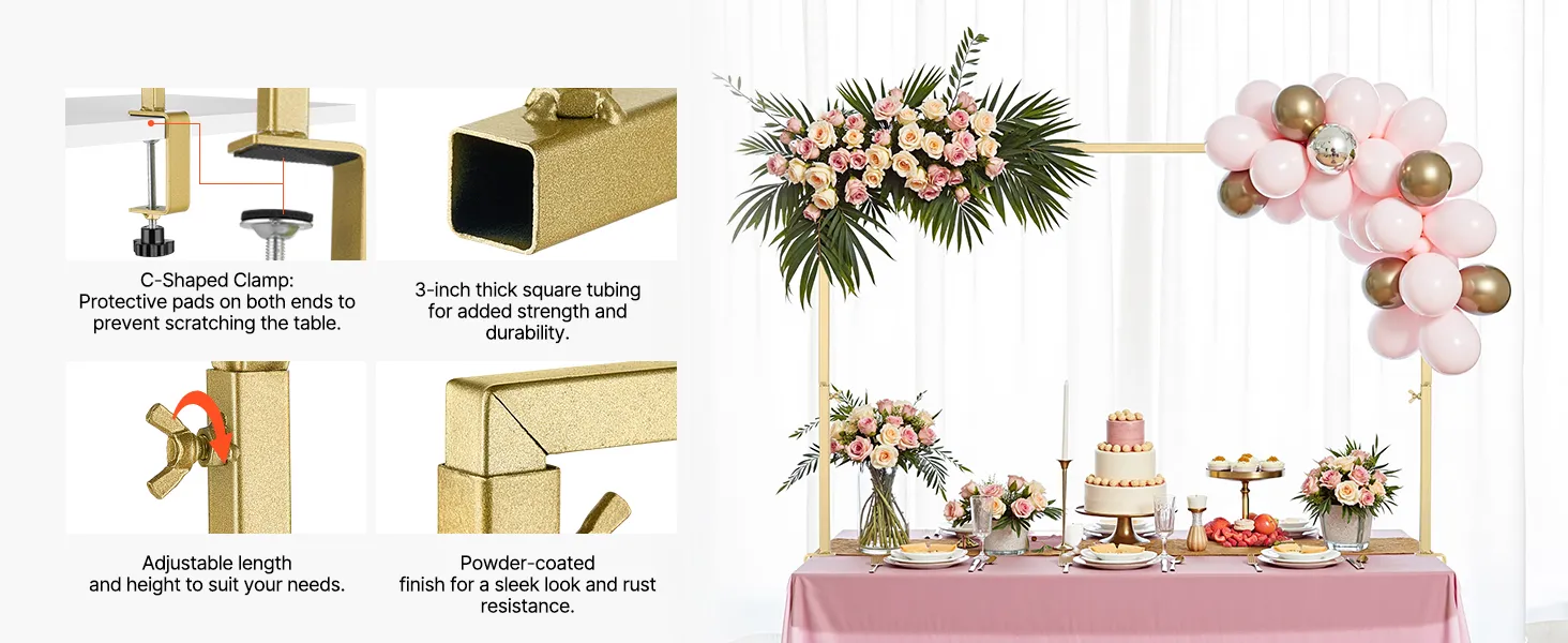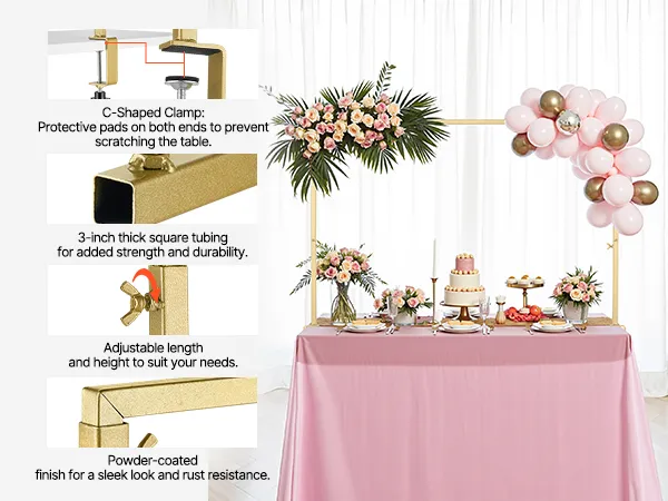 Wszechstronny i elastyczny: przenośny i łatwy do przenoszenia, ten łukowy stojak stołowy jest idealny do użytku wewnątrz i na zewnątrz. Jest idealny na wesela, uroczystości, przyjęcia urodzinowe, Sylwestra, Halloween, Święto Dziękczynienia, Boże Narodzenie, bufety ze słodyczami i przyjęcia z okazji ukończenia szkoły, spełniając wszystkie Twoje potrzeby dekoracyjne.