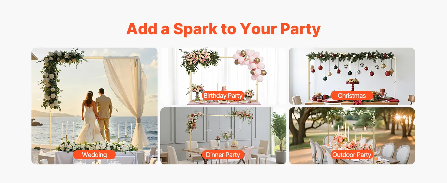 Zawieś światła, podeprzyj balony lub rozłóż baldachim, aby szybko go rozstawić. Idealny na wesela, imprezy i święta. Niezależnie od tego, czy w pomieszczeniu, czy na zewnątrz, ten słup tworzy oszałamiającą atmosferę na każdym wydarzeniu.