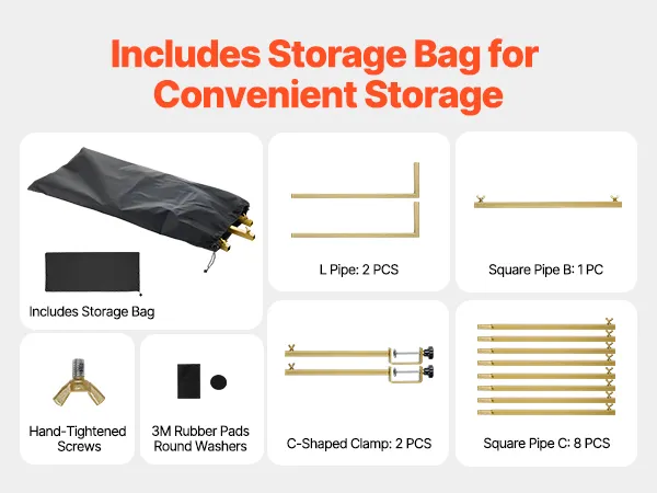Solidna, nośna konstrukcja: Ten stojak na stół wykonany jest z kwadratowych rur i zacisków C o średnicy 77 mm, oferując nośność od 4,5 kg do 9,1 kg. Dzięki temu jest trwalszy i stabilniejszy niż konwencjonalne cienkie okrągłe rurki. Odporne na rdzę, malowane proszkowo wykończenie wytrzymuje działanie czynników atmosferycznych.